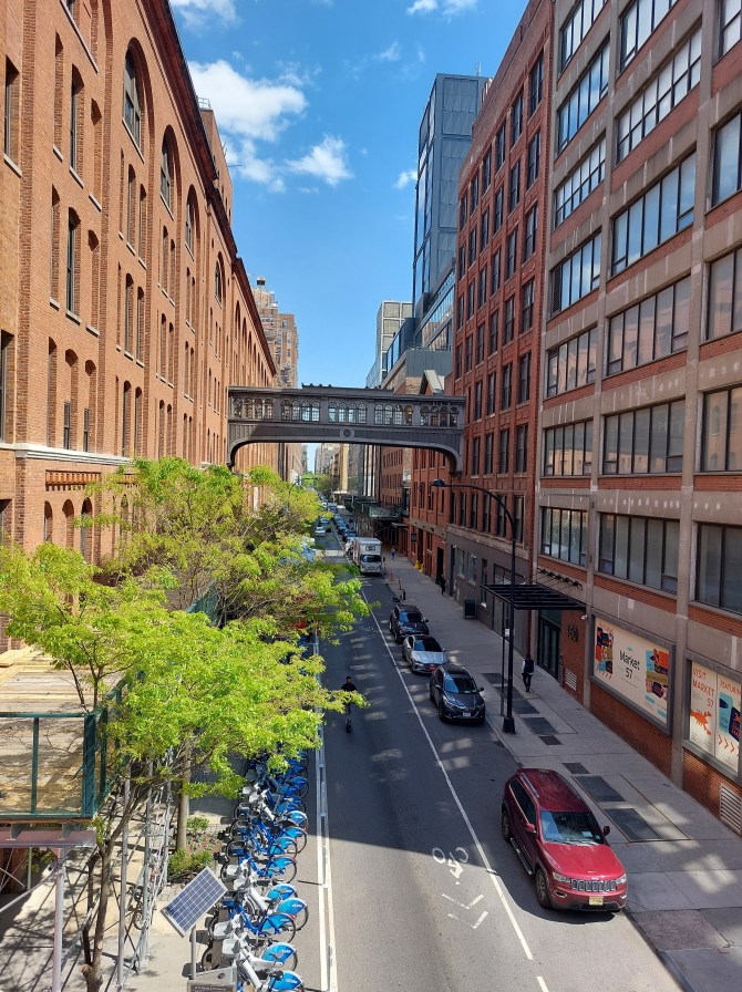 Jedno z zejść z High Line mieści się w dzielnicy Chelsea, gdzie w budynkach dawniej należących do kompleksu fabrycznego National Biscuit Company powstał Chelsea Market, czyli targ pod dachem pełny sklepików z pamiątkami (częściej rękodzieło niż „chińszczyzna”), kafejek i knajpek, gdzie można zjeść nowojorskich specjałów.