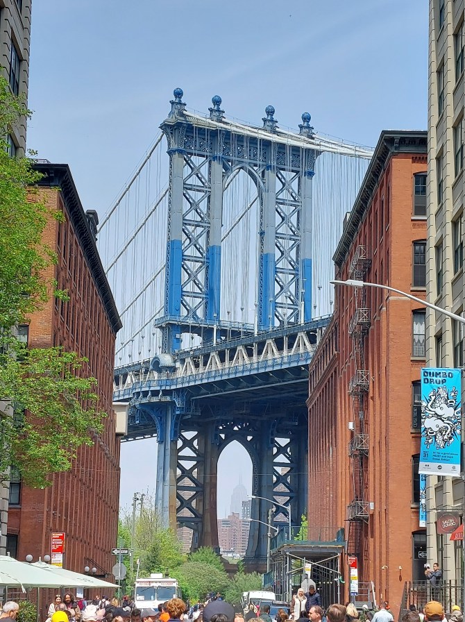 DUMBO – Washington Street i ikoniczny widok na most Manhattan Bridge