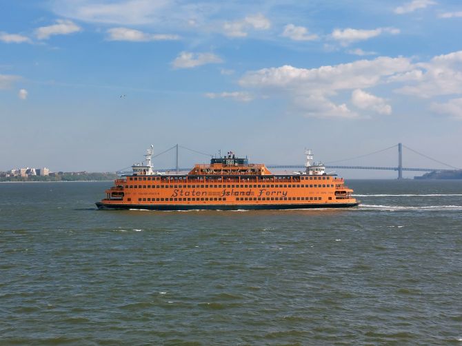 Z pomarańczowych statków linii Staten Island odpływających z Staten Island Ferry Terminal na południowym krańcu Manhattanu, widać doskonale wysokościowce manhattańskiego Downtown, ale także: Most Brookliński, a za nim Manhattan Bridge, nabrzeża Brooklynu, w tym rude, ceglane kamienice Brooklyn Heigts, a także wieżowce Brooklyn Downtown, czyli powstającej po drugiej stronie East River alternatywie dla Manhattanu. Kiedy po zachodniej stronie zatoki coraz lepiej widać Statuę Wolności, na wschodzie powoli przesuwa się dawniej należąca do amerykańskiej armii wyspa Governors Island – dziś miejsce wypoczynku nowojorczyków. W miarę zbliżania się do Staten Island można uzmysłowić sobie wielkość tej wyspy. Ta, czasem nieco zapomniana, dzielnica Nowego Jorku, niefunkcjonująca w powszechnej świadomości jako część miasta tak mocno jak Manhattan, Bronx, Queens i Brooklyn, jest najbardziej małomiasteczkowa i najmniej zaludniona, ale jest znacznie większa niż Manhattan, czy Bronx (powierzchniowo ustępuje wyłącznie Brooklynowi i Queens).