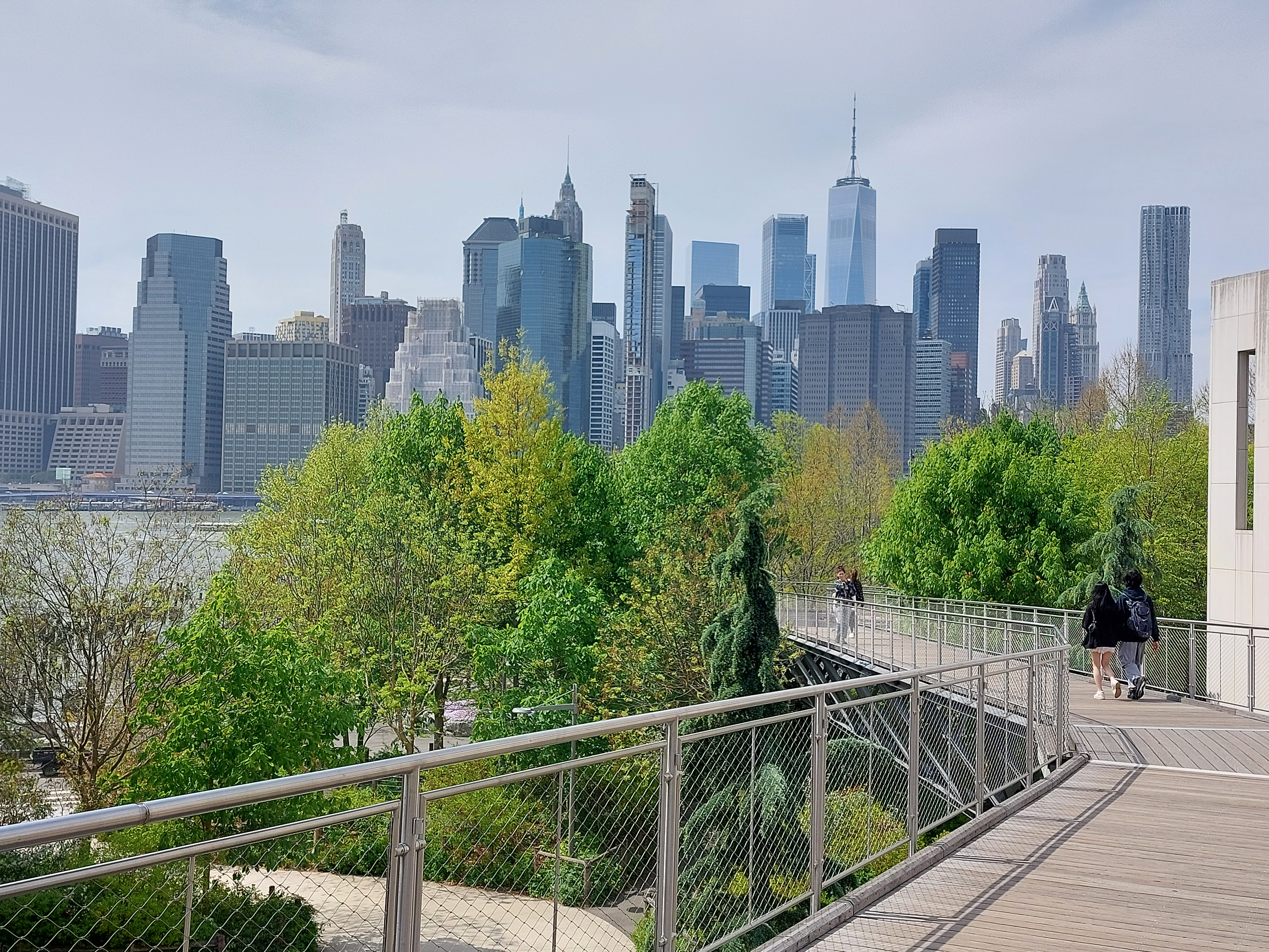 Kładka Squibb Parl Bridge na Brooklynie, z której rozciąga się piękny widok na Dolny Manhattan, w tym na wieżę One World Trade Center