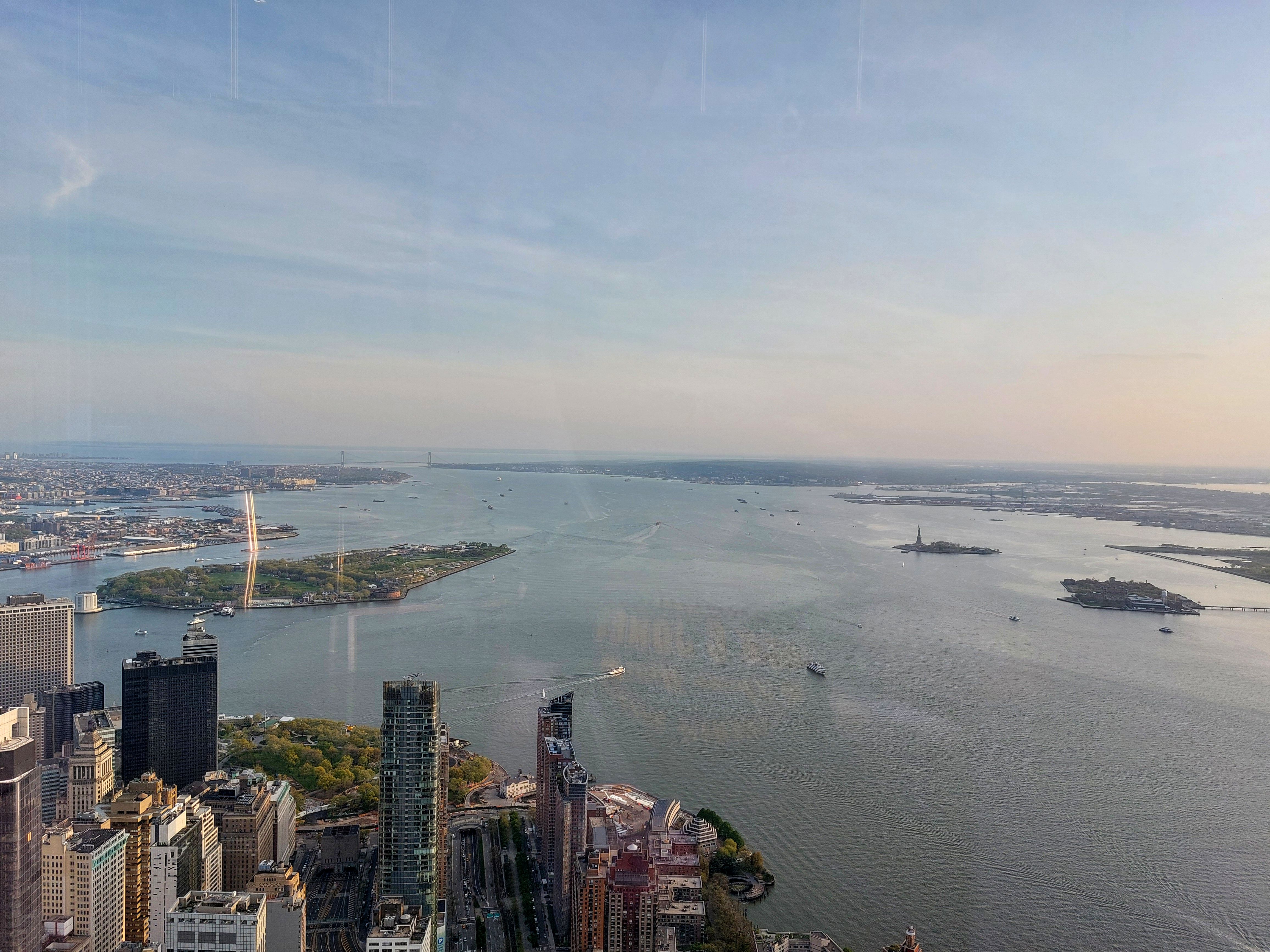 Widok z One World Observatory (wieżowiec One World Trade Center) na Zatokę Nowojorską
